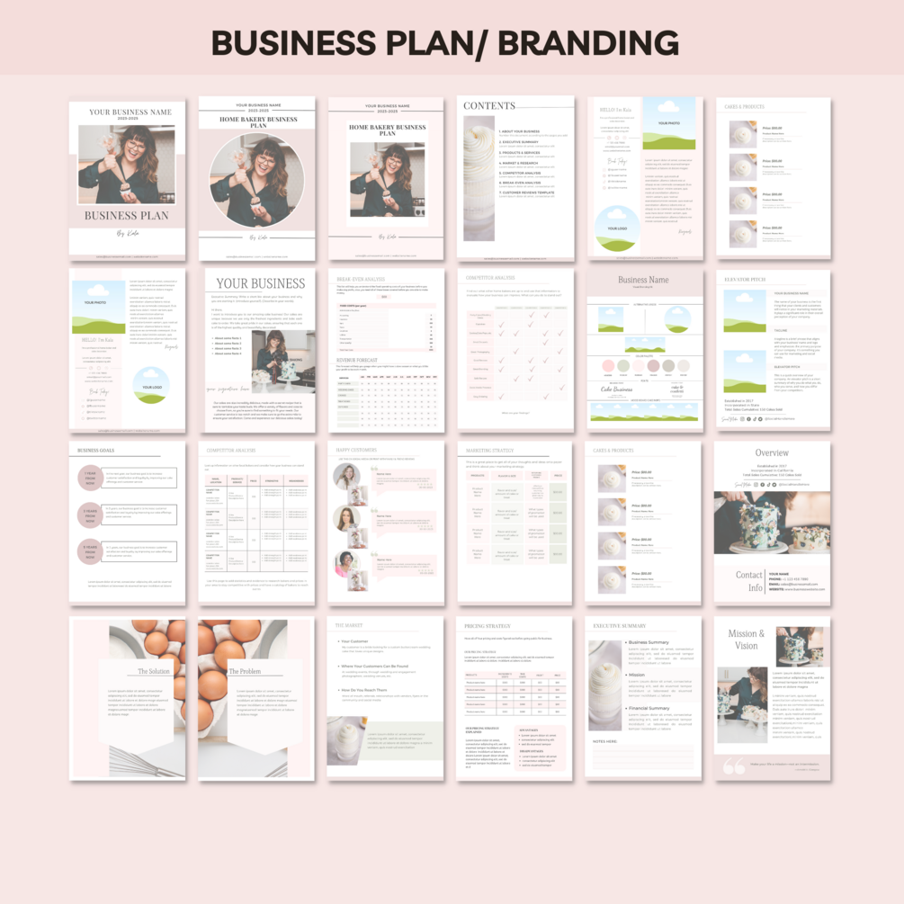 This workbook includes everything you need to create a winning business plan and set your home bakery up for success. It features editable templates that make it easy to organize your thoughts and professionally present your ideas. You'll also find a branding kit to help establish a solid and consistent visual identity for your home bakery.